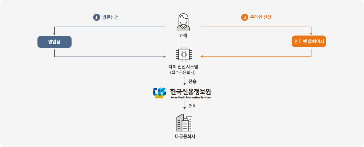 *저축은행, 생명보험사, 손해보험사, 증권사, 카드사의 경우 방문 신청 또는 온라인 신청 중 한 가지 방식만 운영하는 경우가 있음