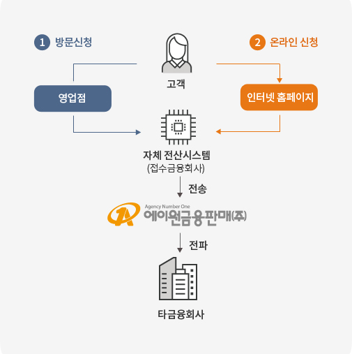 * 접수처 : 은행(수출입은행, 외은지점 제외), 증권사, 저축은행, 카드사, 생명보험사, 손해보험사, 종합금융회사, 우체국, 주택금융공사접수금융회사 > 처리 금융회사